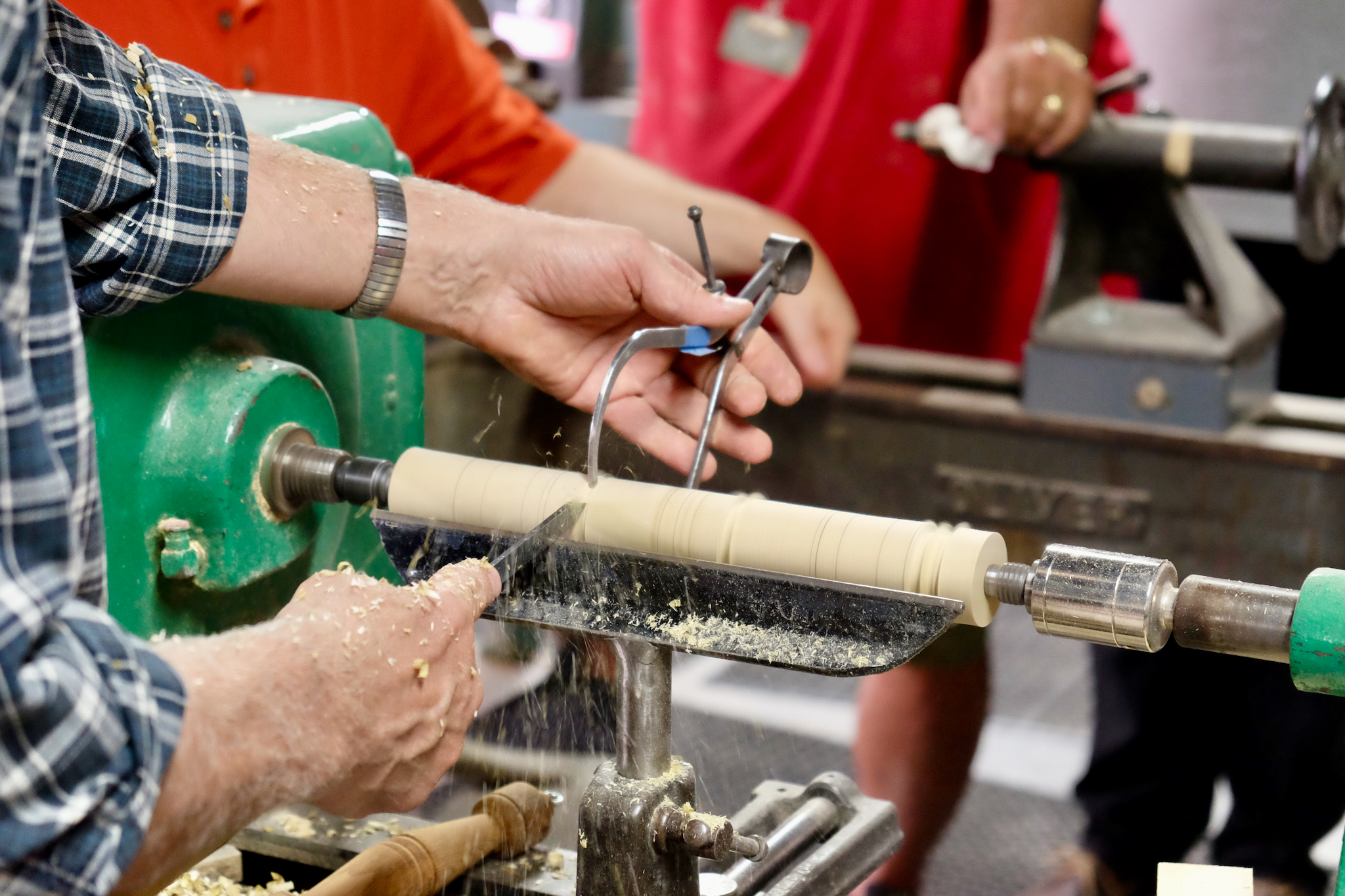 We collaborate with local shop / STEM teachers to hold woodturning classes for students.
